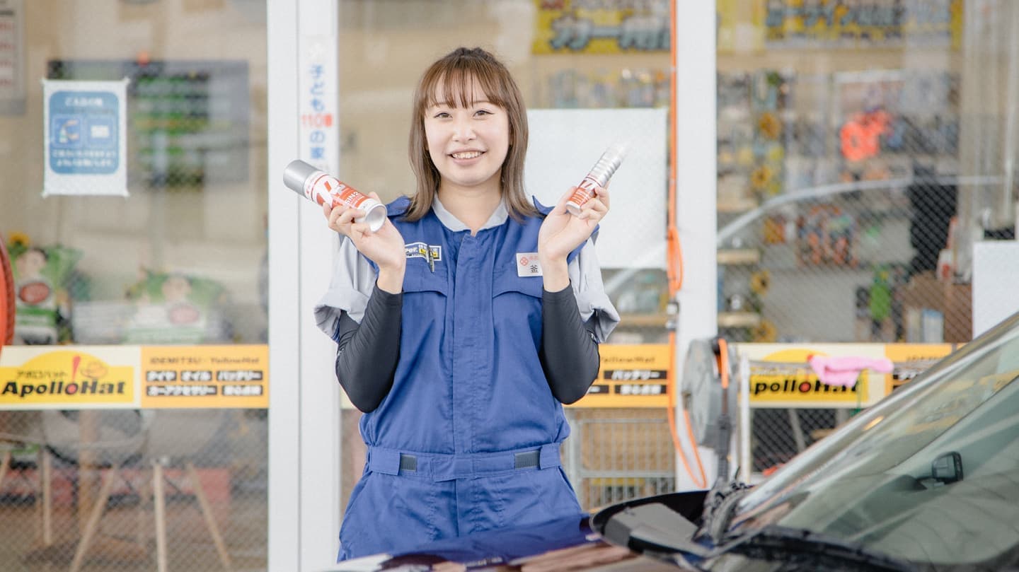 殿 SSのスタッフとして接客やカーメンテナンスを行っています。特にお車をキレイにするためのコーティングは私が担当しています。コーティングをするにも一定の品質を確保するためにメーカー指定の資格試験があり、段階的に資格を取得して技術に磨きをかけています。お客様からの「愛ちゃん車キレイにしてくれてありがとう」の一言が一番うれしいです。