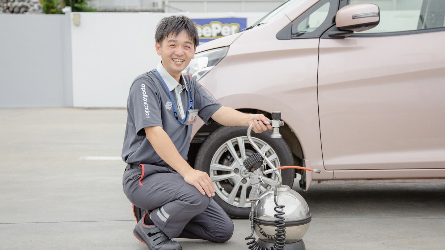 SSスタッフとして、商品販売や在庫管理、カーメンテナンスなど幅広く携わらせていただいています。入社後、会社の資格取得支援制度を活用して二級自動車整備士資格を取得し、自動車整備についても日々勉強しています。自分が携わった業務でお客様に喜んでいただける時にやりがいを感じます。
